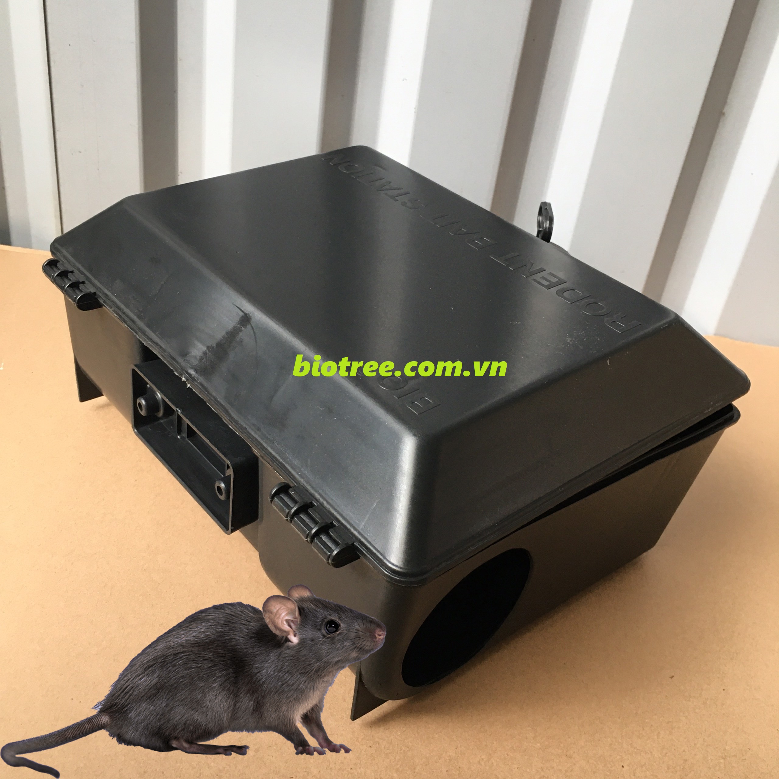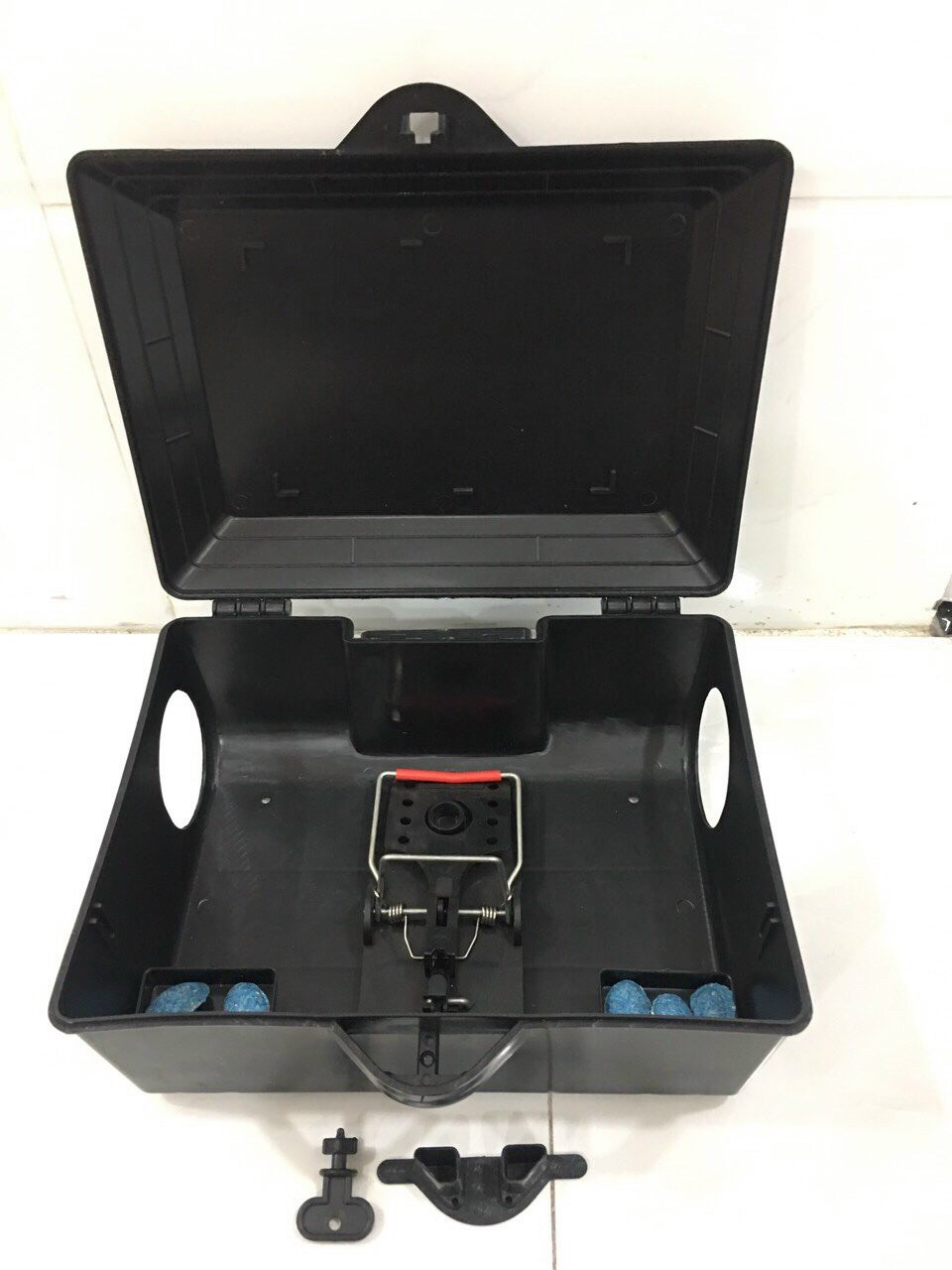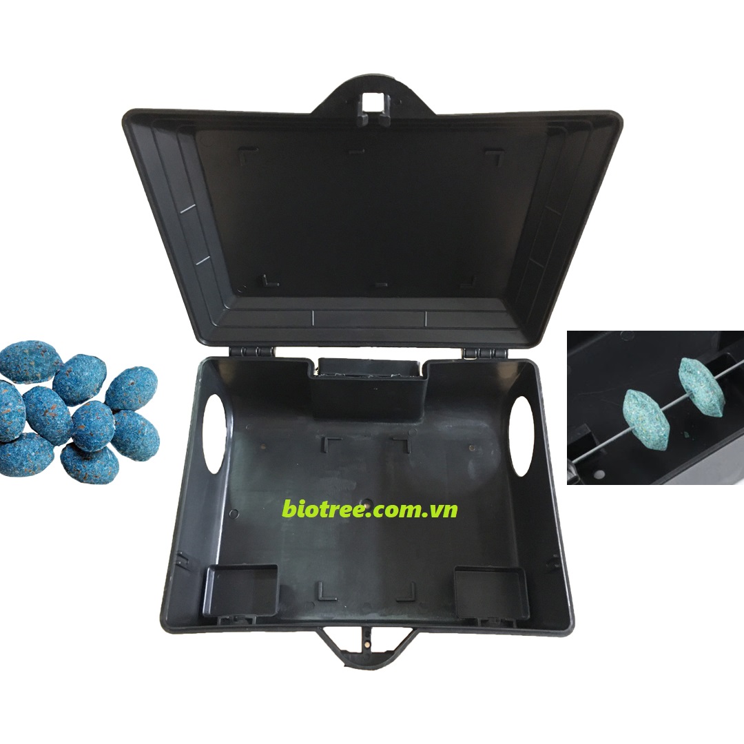 - Hộp bẫy chuột Bio trang bị bản lề và khóa. Sử dụng đa năng bẫy keo, bẫy sập và bã chuột viên và lỗ