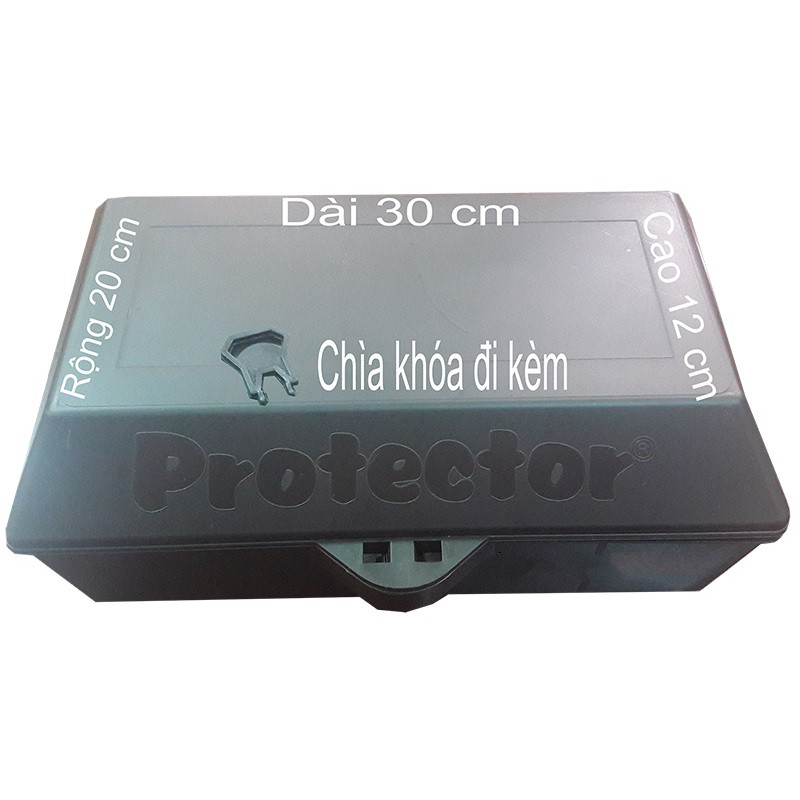 Hộp bẩy chuột Protector trang bị khóa an toàn.Sử dụng được bẫy keo , bẫy sập và bã chuột– Sản phẩm được kiểm định có tính an toàn cao, tiêu chuẩn quốc tế, bảo vệ môi trường. Được sử dụng rộng rãi tại các nước phát triển. – Hộp bả chuột sử dụng cho các tòa nhà chung cư, trung tâm thương mại, nhà dân, văn phòng, kho hàng, trong nhà, ngoài trời ….Bất cứ nơi đâu phát hiện có chuột qua lại.VÌ SAO NÊN SỬ DỤNG HỘP BẪY CHUỘT PROTECTOR1 / Hộp tạo không gian giống như tổ chuột - giúp chuột thoải mái khi ăn mồi2 / Bảo vệ an toàn cho người và vật nuôi khi chúng ta đặt bẫy ( tránh tình trạng bỏ bã chuột hoặc bẫy sập chuột bừa bải gây nguy hiểm) 3 / An toàn và dễ sử dụngHƯỚNG DẪN SỬ DỤNG:- Đặt hộp sát vách tường - khoảng cách từ 5 - 7 m / hộp tùy khu vực- Đặt bẫy keo hoặc bẫy sập hoặc bã chuột vào trong- Định kỳ kiểm tra nếu phát hiện chuột dính vào bẫy keo - bẫy sập thì ta mang vứt bỏ.Trường hợp đặt bã chuột khi phát hiện hết bã ta tiếp tục cho thêm vào.