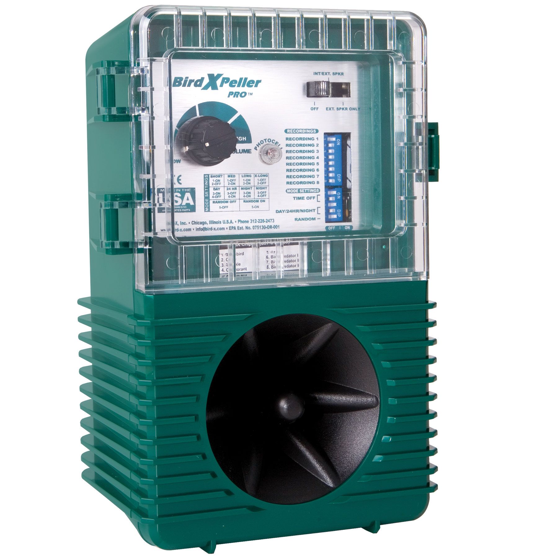 Máy xua đuổi chim Bird-X-Peller PRO là thiết bị bao gồm hệ thống âm thanh phát ra những âm thanh mô phỏng tiếng gọi của kẻ săn mồi chim hoặc âm thanh quấy rối, hệ thống Sonic với âm thanh báo động thay đổi liên tục, những âm thanh đau khổ, chết chóc khiến những con chim nhỏ không dám lại gần.