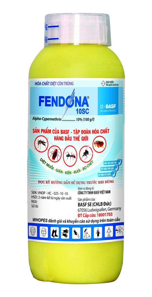 - 5 ml FENDONA 10SC phun được 20 m2 tường (vách). Hiệu lực của hóa chất kéo dài từ 4 – 6 tháng.