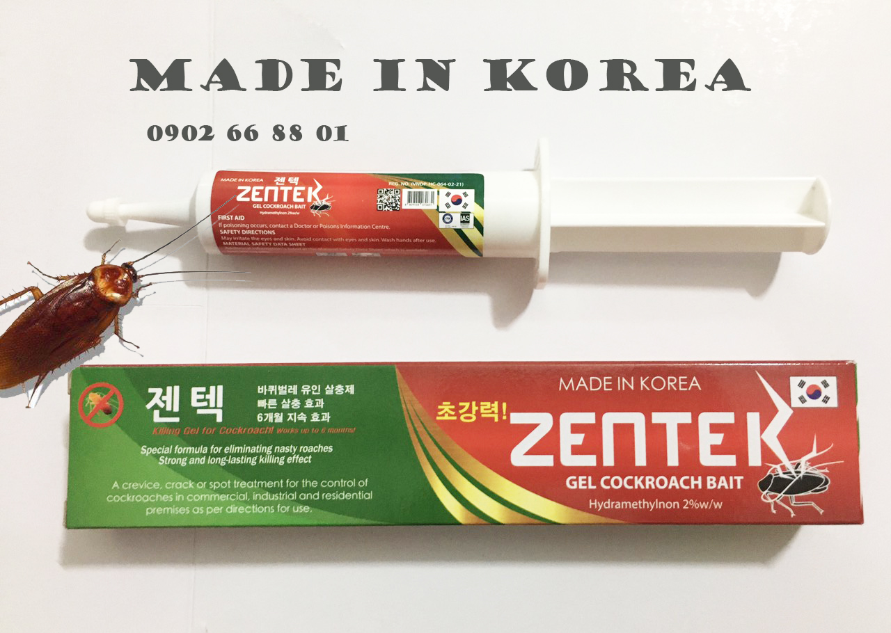 ZenTek Là một loại sản phẩm hóa chất diệt gián dạng tuýp gel có xuất xứ tại Hàn Quốc. Đây là dòng sản phẩm chuyên dụng trong diệt gián Đức cũng như các loại gián nhà với hiệu quả cao, tiện dụng và an toàn khi sử dụng trong nhà bếp, siêu thị, nhà hàng, khách sạn, ….