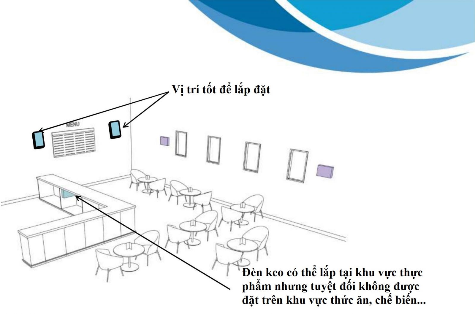 - Không được sử dụng đèn xung điện trong khu vực thực phẩm – chỉ sử dụng đèn keo